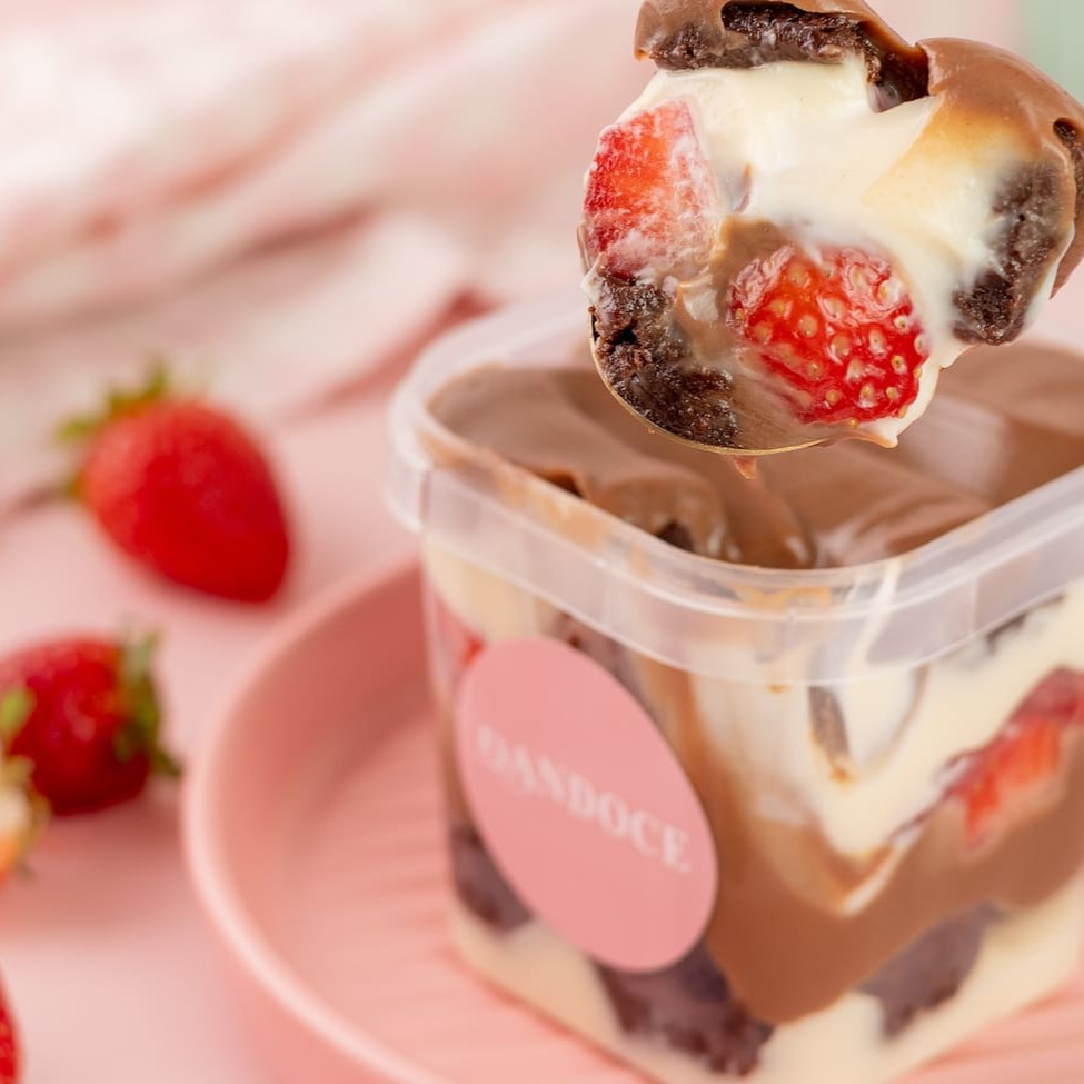 Brigadeirão - Brigadeiro Ninho + Morango Fresco + Granulado Nobre Belga