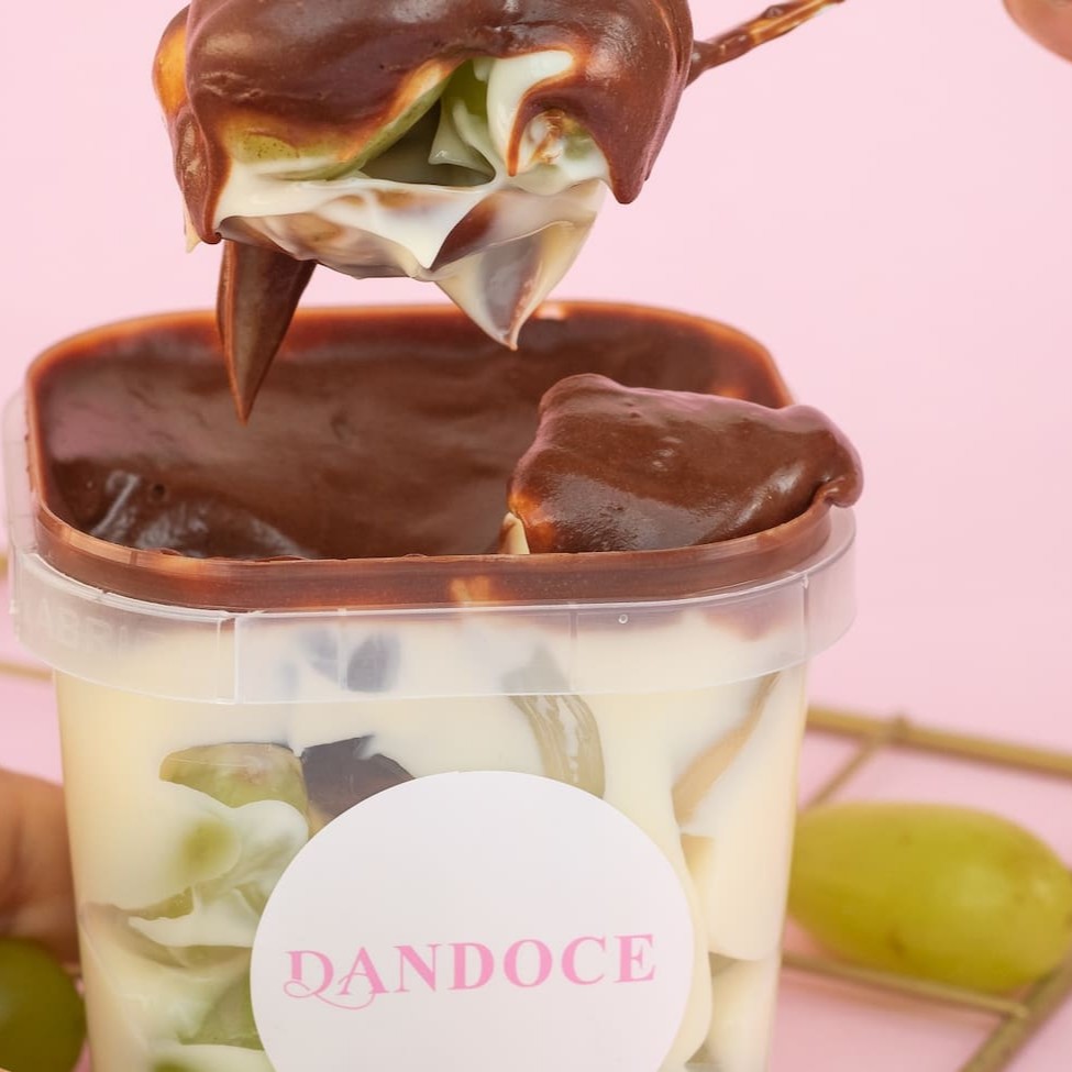 4 unidades na caixinha. Brigadeiro de ninho + uva verde sem caroço.