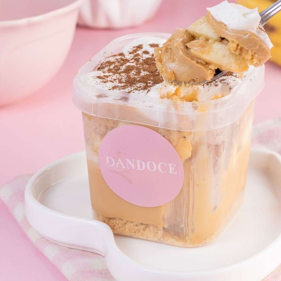 Farofinha amanteigada de bolacha passatempo, com doce de leite cremoso e banana prata. Finalizada com chantininho suave e canela em pó.