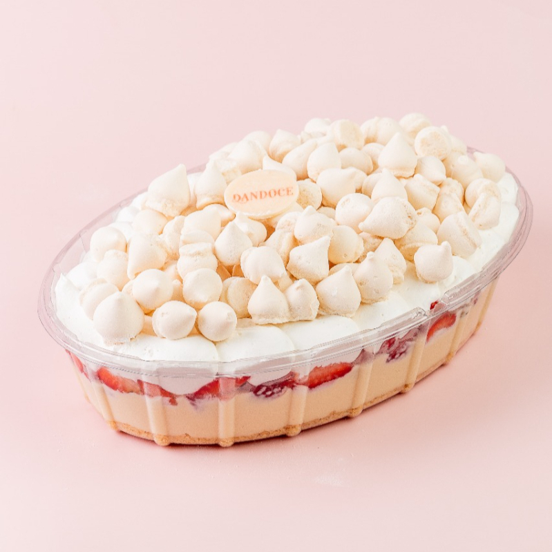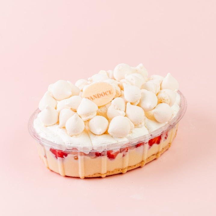 Massa branca fofinha, com recheio de ninho e morango fresco. Rendimento estimado para 4 pessoas. Peso médio 600g.