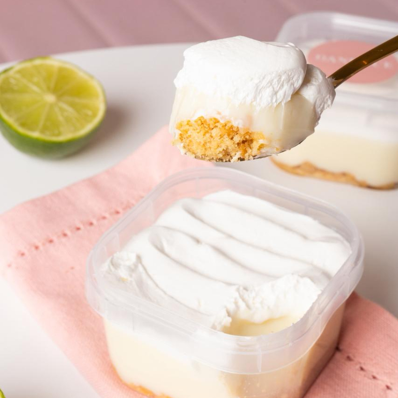 Deliciosa e refrescante, nossa tortinha é composta por farofinha de bolacha passatempo e mousse de limão, finalizada com chantilly e limão.