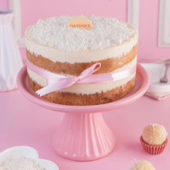 Massa branca fofinha, regada com nossa calda especial de coco. Recheio e cobertura de coco cremoso, finalizado com coco ralado. Peso final médio: 1,5kg / Rendimento estimado para 10 pessoas.