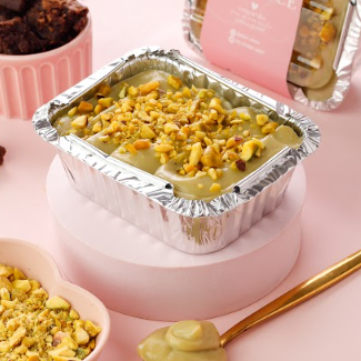Nosso delicioso brownie chocolatudo, com cobertura de brigadeiro de pistache. Peso médio - 100 a 110g