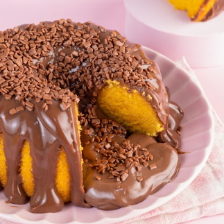 Massa fofinha de cenoura, com cobertura de brigadeiro e granulado belga. Serve até 3 pessoas - 300g.