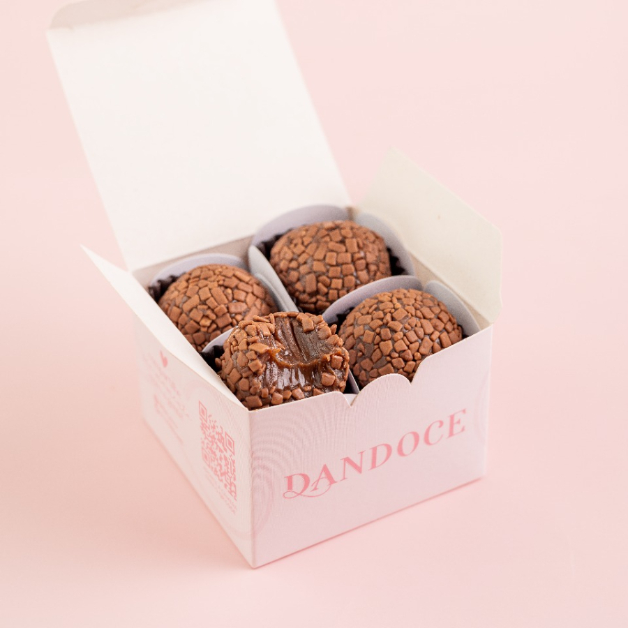 4 unidades na caixinha. Nossos brigadeiros são irresistíveis, coma sem moderação!