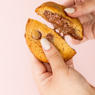 Delicioso cookie tradicional, recheado com Nutella pura. Produto artesanal, com peso médio de 85 à 90g I Sugerimos aquecer 15s no microondas.