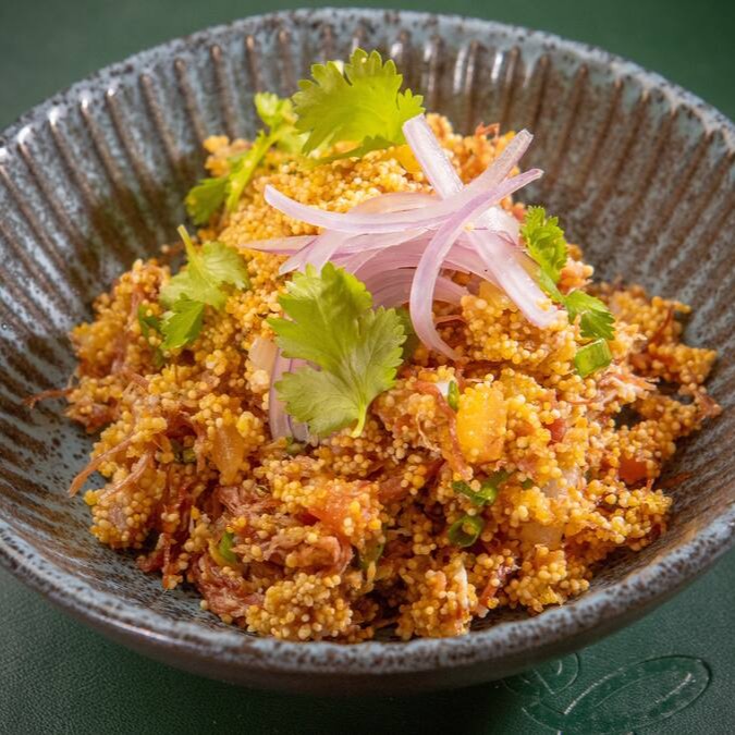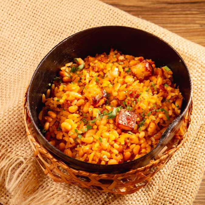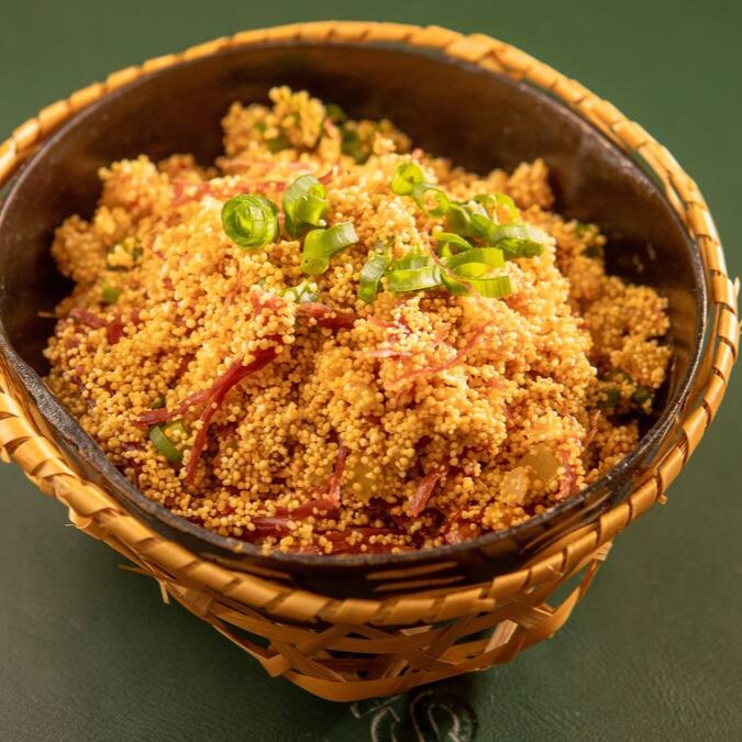 Acompanha farofa de farinha de cruzeiro do sul e arroz branco