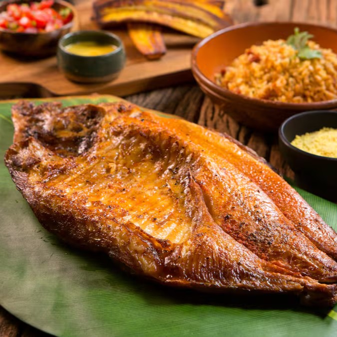 *Acompanha farofa de uarini/cruzeiro do sul, arroz branco/baião, vinagrete e banana da terra.
