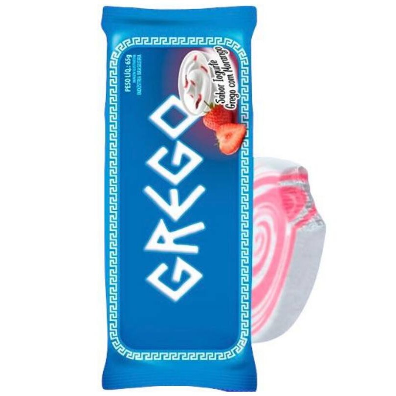 Uma cremosa combinação: picolé sabor iogurte grego com morango.