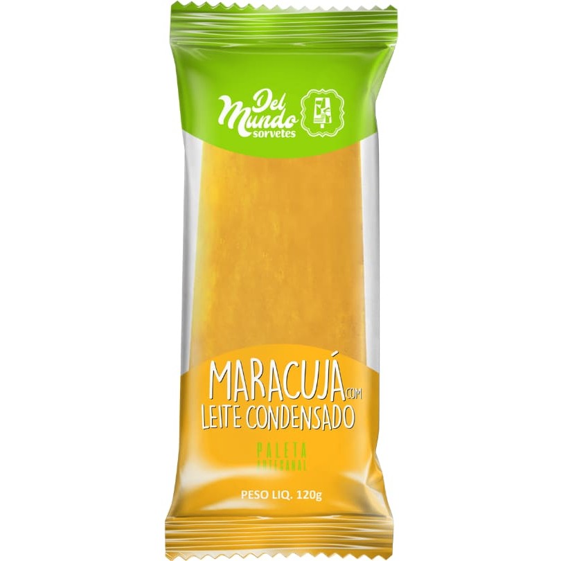 Essa paleta tem sabor maracujá e recheio de leite condensado. Não precisa resistir!