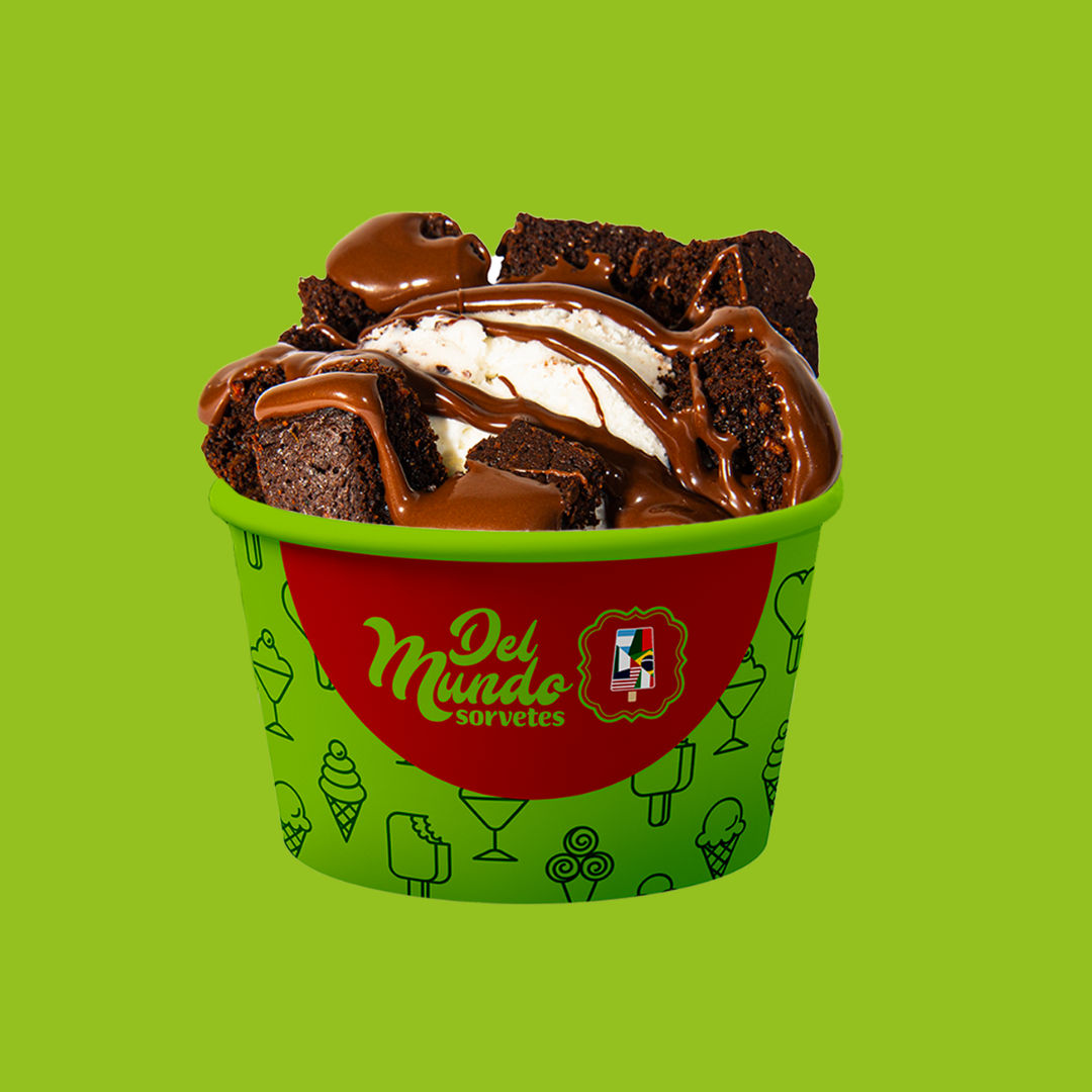 Uma sobremesa que vai te conquistar! Pedaços de brownie com sorvete e uma deliciosa calda à sua escolha!