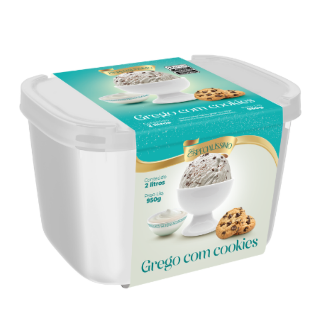 Sorvete de massa sabor iogurte grego com gotas cookies. 2 litros de alegria direto para a sua casa!