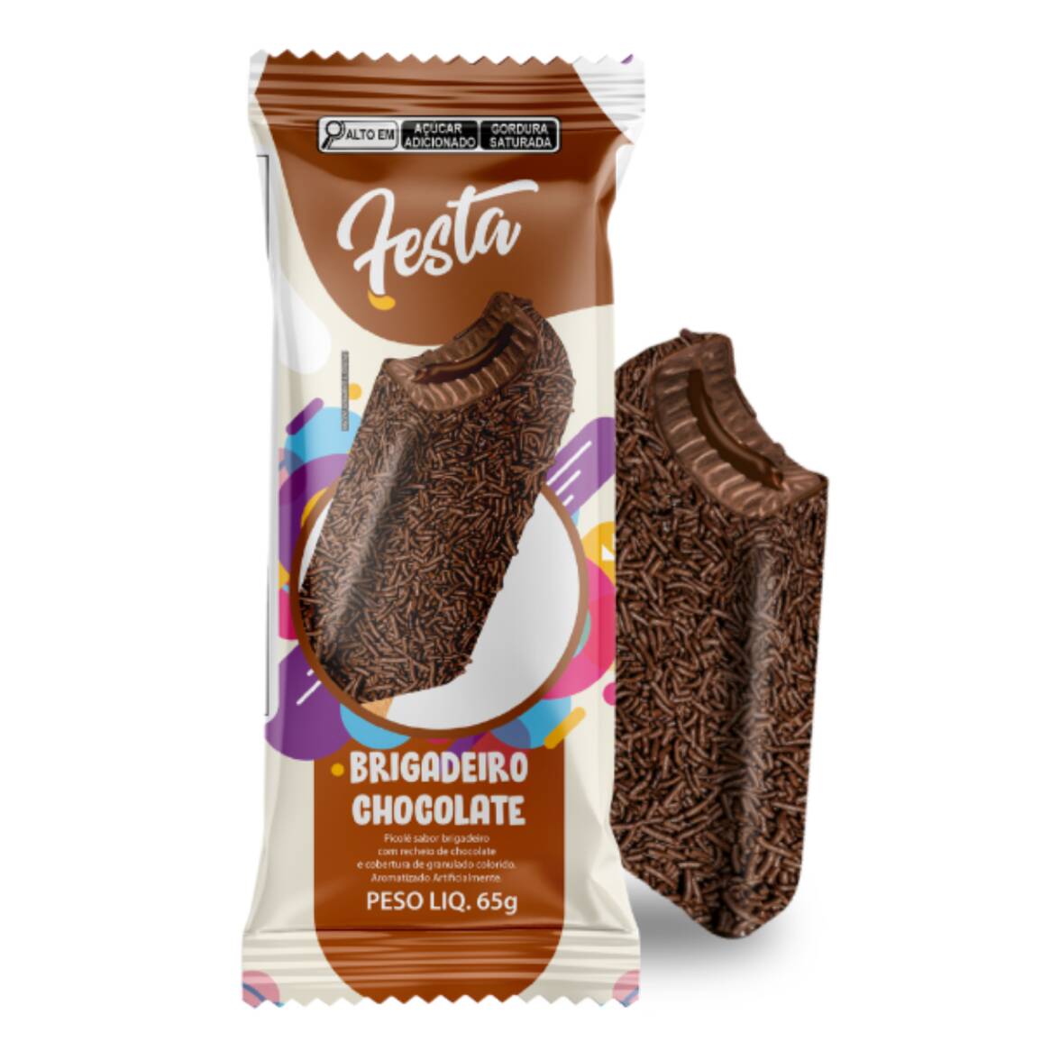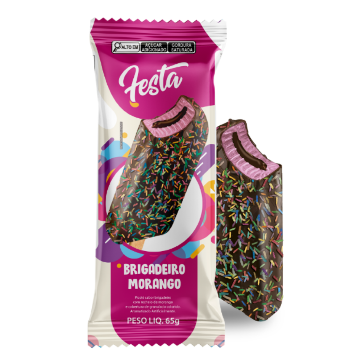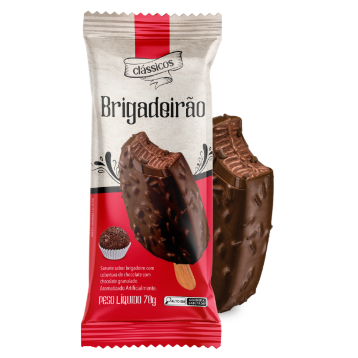 Alegria em excesso com esse picolé sabor brigadeiro com recheio de brigadeiro e cobertura de chocolate com confeito granulado.