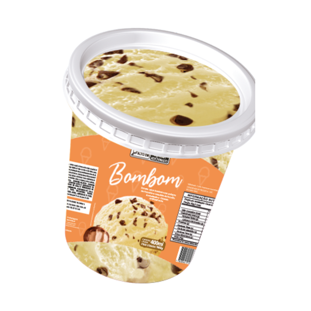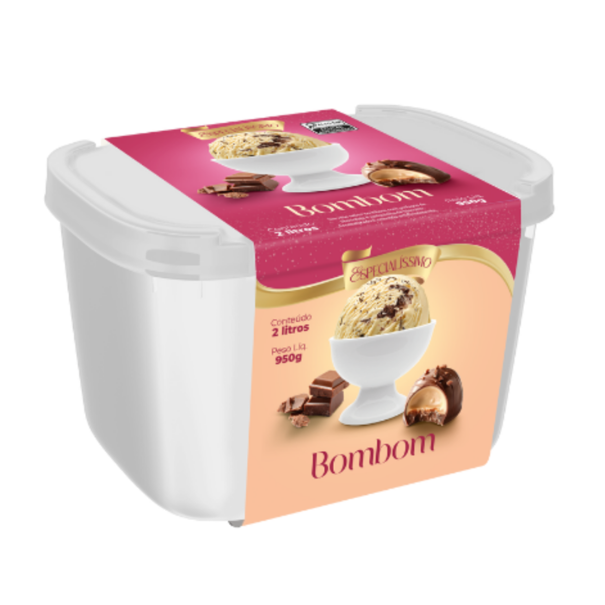 Sorvete de massa sabor bombom. 2 litros de alegria direto para a sua casa!