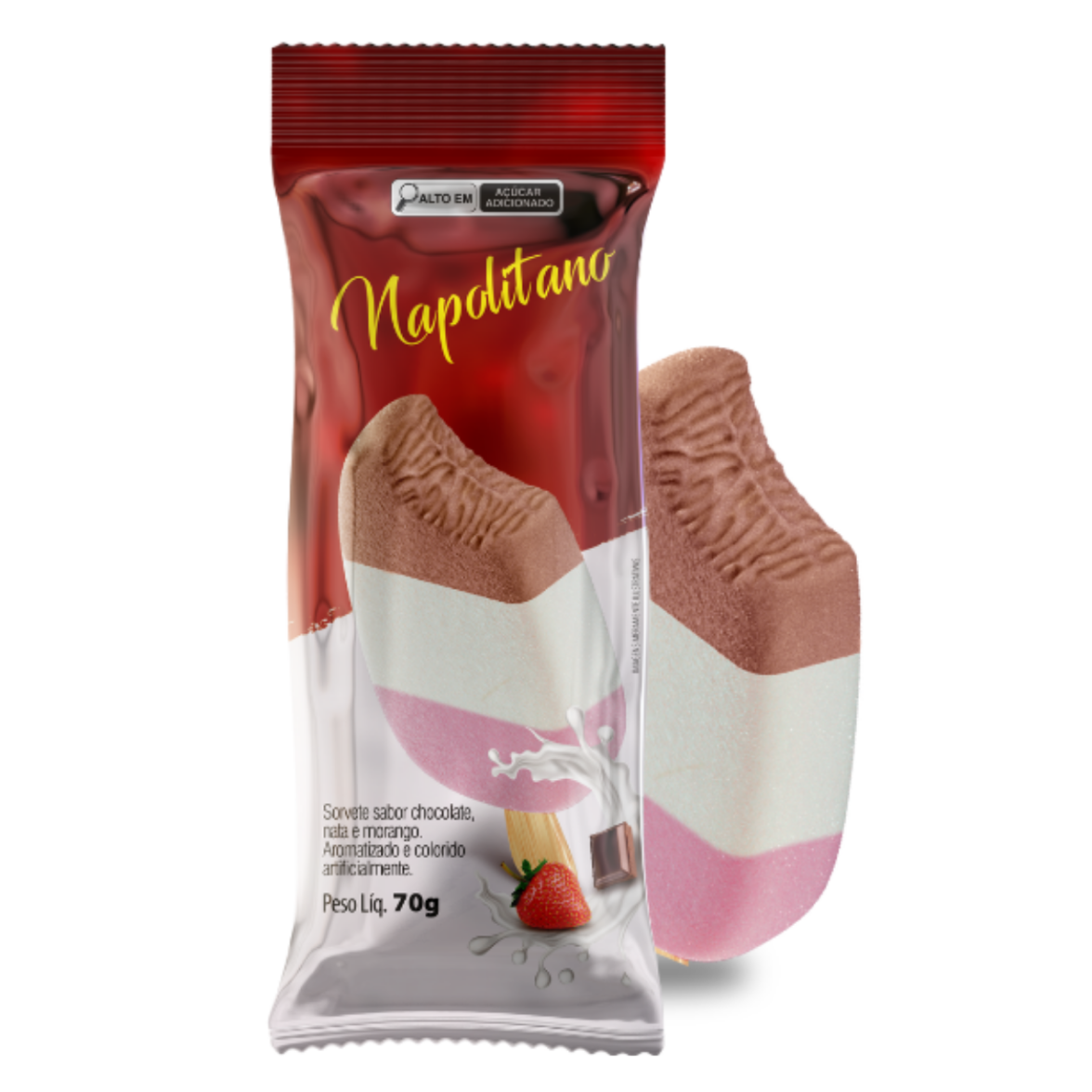 Picolé sabor chocolate, nata e morango. Triplamente saboroso!