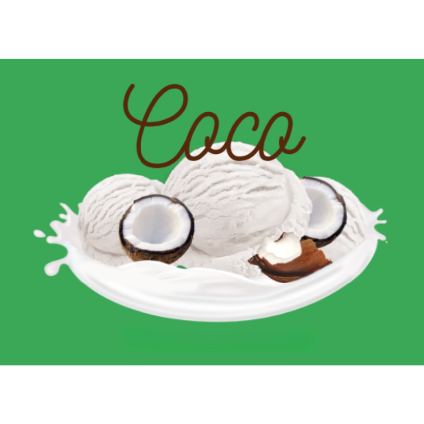 Picolé sabor baunilha com recheio de chocolate branco e cobertura de chocolate branco com coco e castanha.