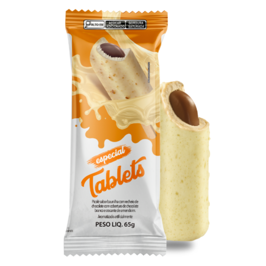 Todo mundo ama! Picolé sabor baunilha com recheio de chocolate e cobertura de chocolate branco e crocante de amendoim.