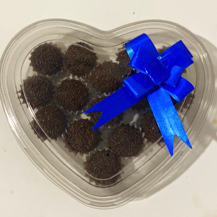 Com 15 brigadeiros irresistíveis, envolto por um lindo coração.