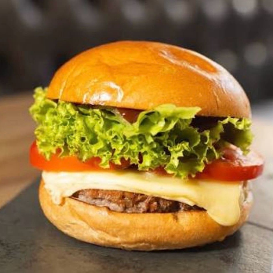 Pão de hambúrguer carne queijo prato maionese salada