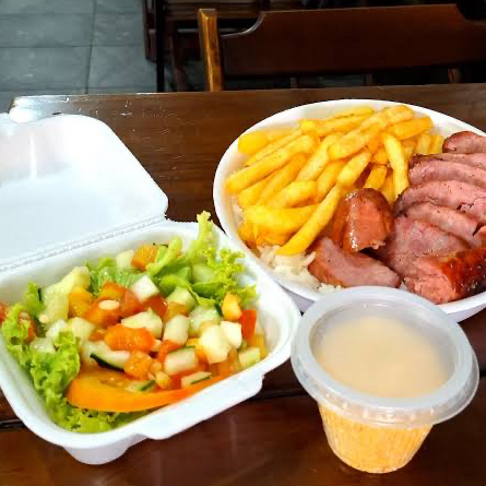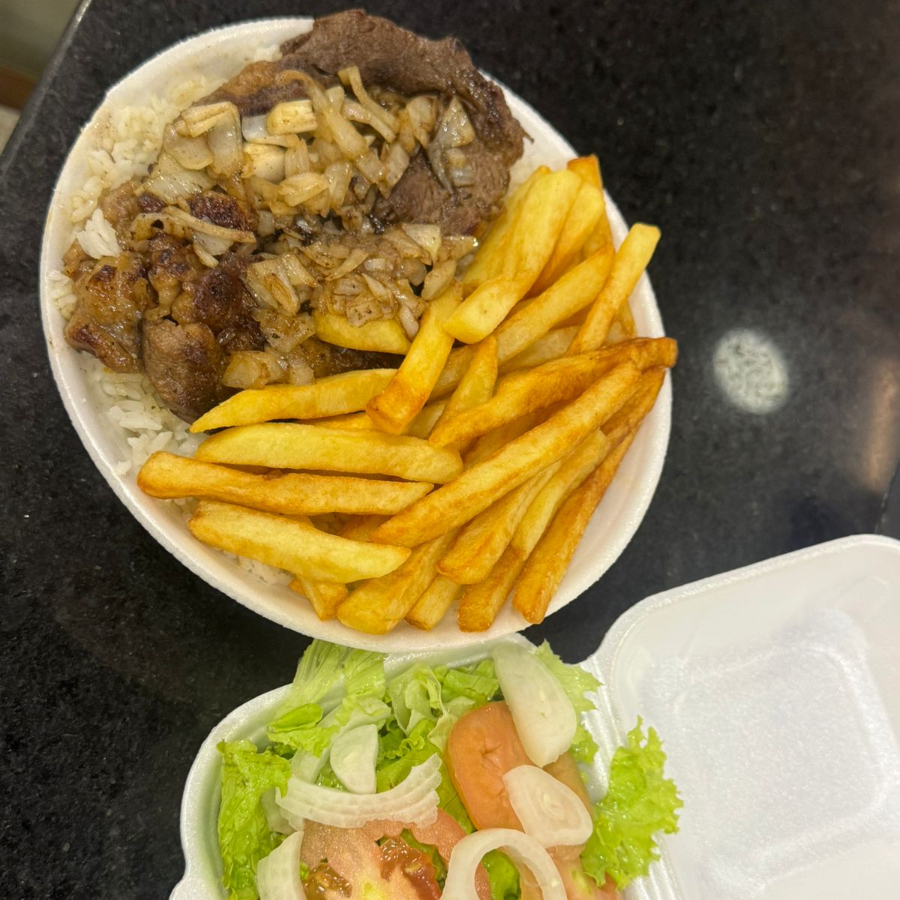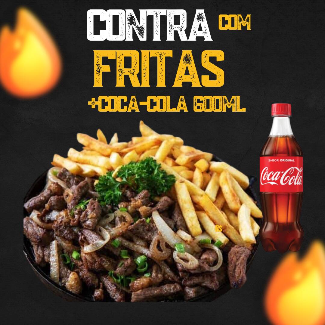 300 g de batata frita 500 g de contra filé grelhado acebolado mas uma coca 600 ml