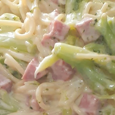 Macarrão espaguete brócolis bacon molho branco 500g