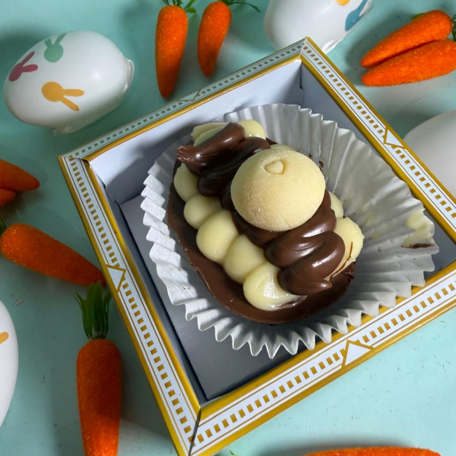 Mini ovinhos de chocolate ao leite com recheio cremoso, perfeitos para lembrancinhas e mesas de Páscoa. Delicados, saborosos e feitos na medida certa para encantar.