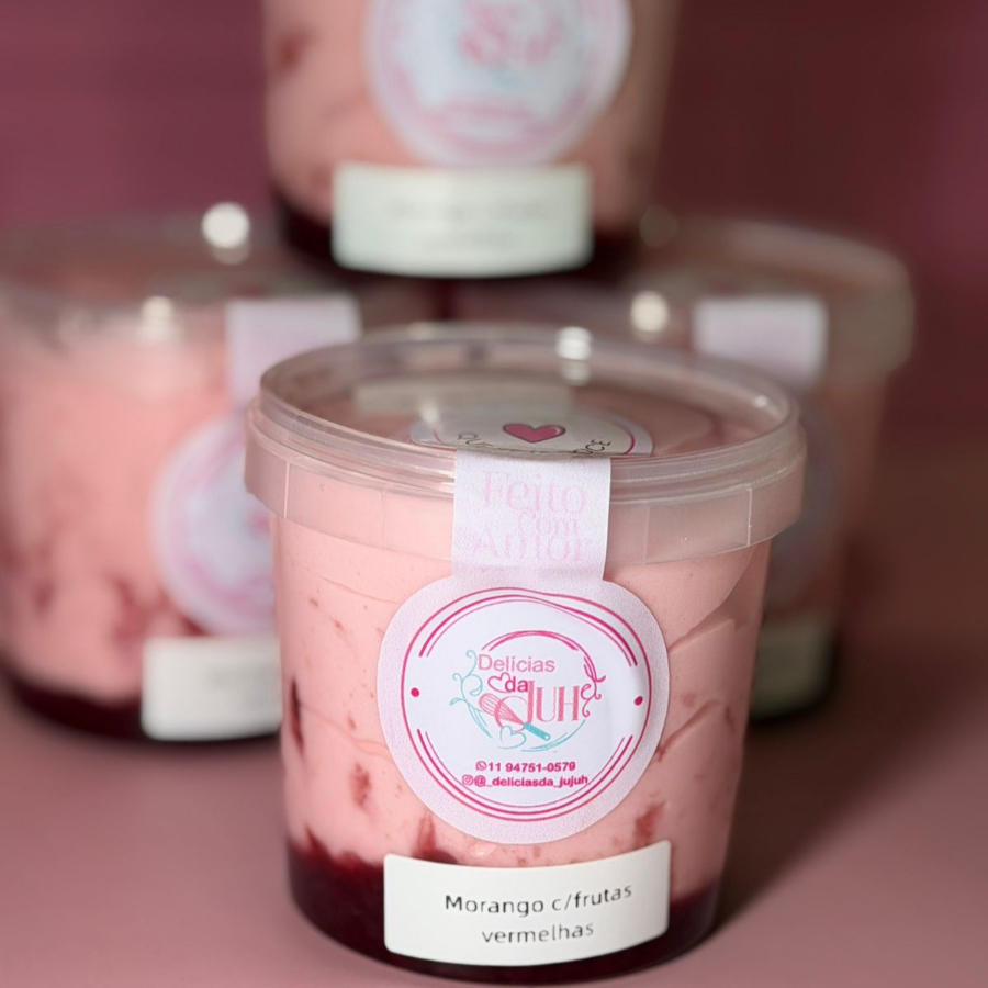 Sorvete Morango Com Geleia De Frutas Vermelhas 220ml