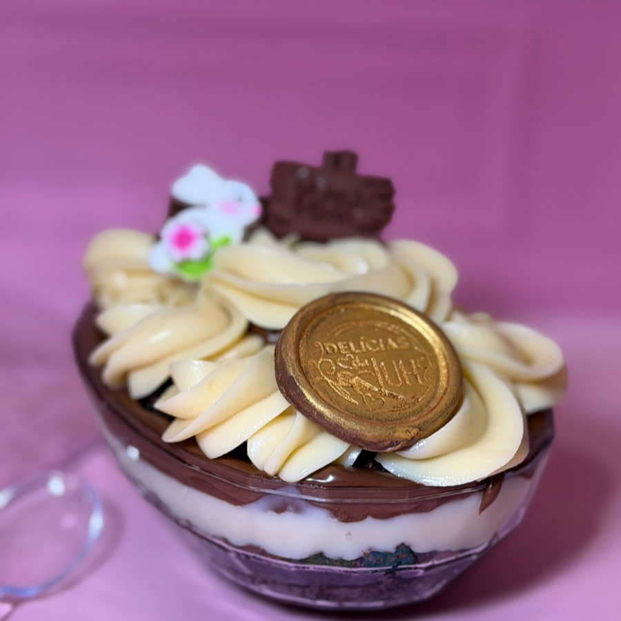 Camadas irresistíveis de massa de chocolate 50% cacau, super macia e molhadinha, intercaladas com um cremoso creme de Ninho. Finalizado com uma generosa camada de chantininho e Nutella por cima, trazendo aquele sabor marcante e equilibrado que derrete na boca. Perfeito para quem ama sobremesas cremosas, chocolatudas e cheias de sabor!