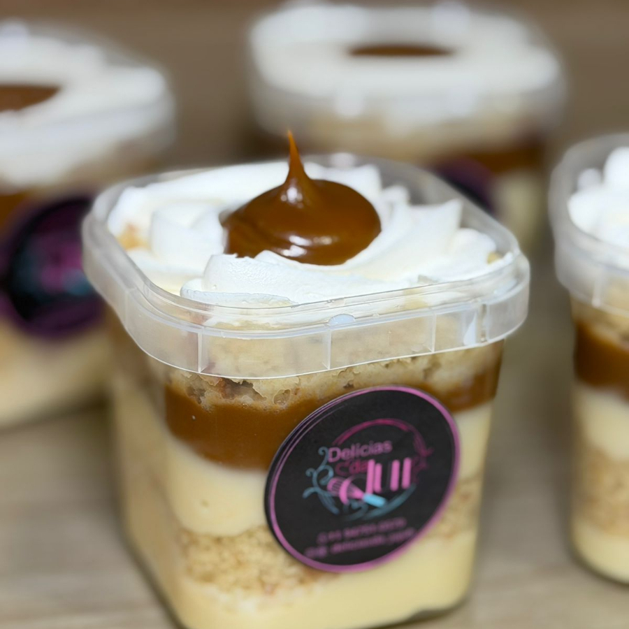 Uma explosão de sabor em cada colherada! Nosso pavê é feito com camadas generosas de creme branco leve e suave, doce de leite cremoso e uma deliciosa farofa crocante de amendoim caramelizado. Pote 150 ml