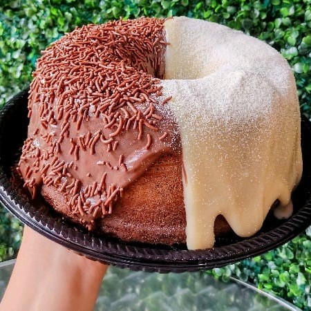 Bolo de chocolate com cobertura metade Ninho e metade brigadeiro !! Serve aproximadamente 10 a 12 fatias ...