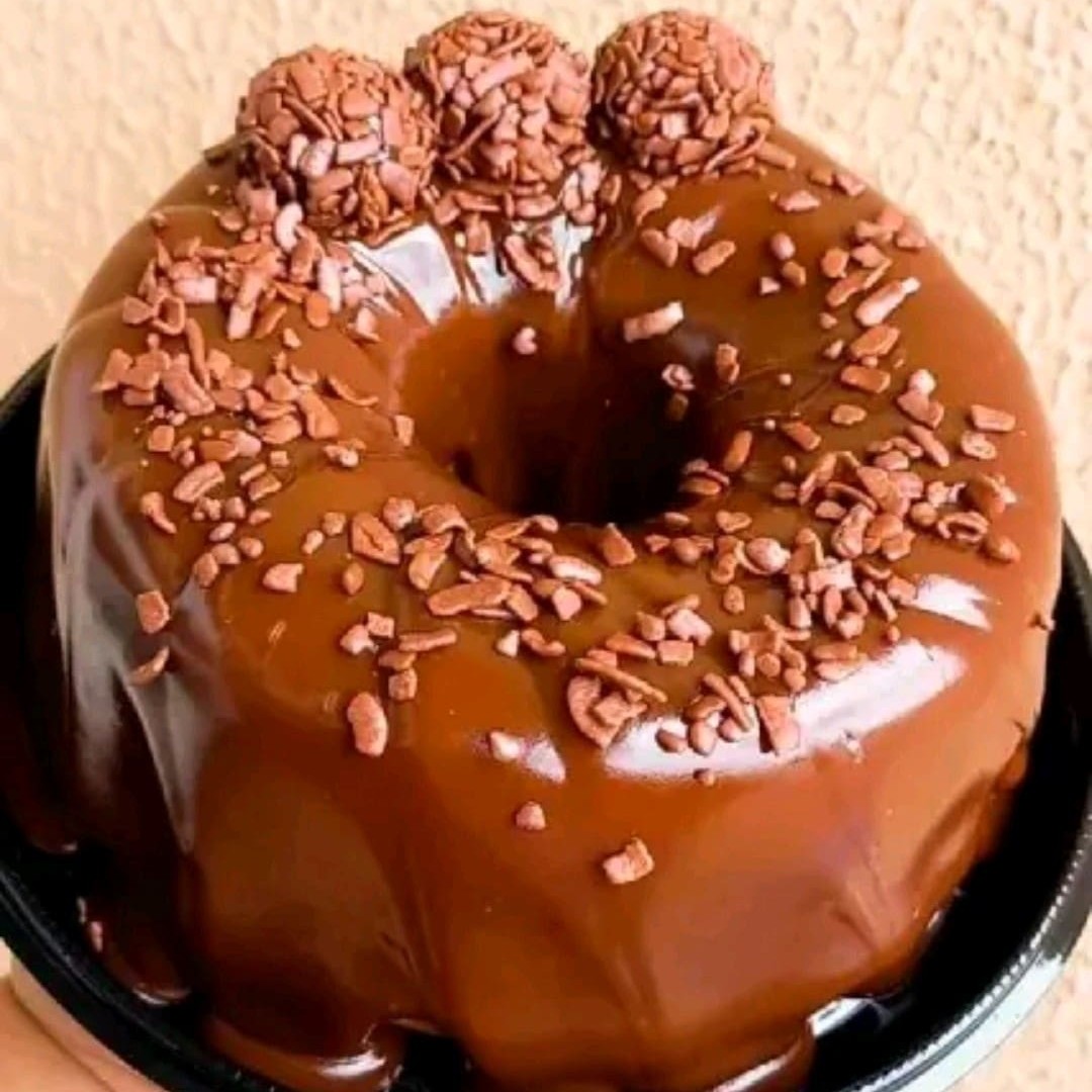 Bolo de chocolate coberto com uma deliciosa cobertura de brigadeiro de leite Ninho gourmet ,na decoração 3 brigadeiros de leite Ninho , enrolado com chocolate branco !!!Serve aproximadamente 10 a 12 fatias ...