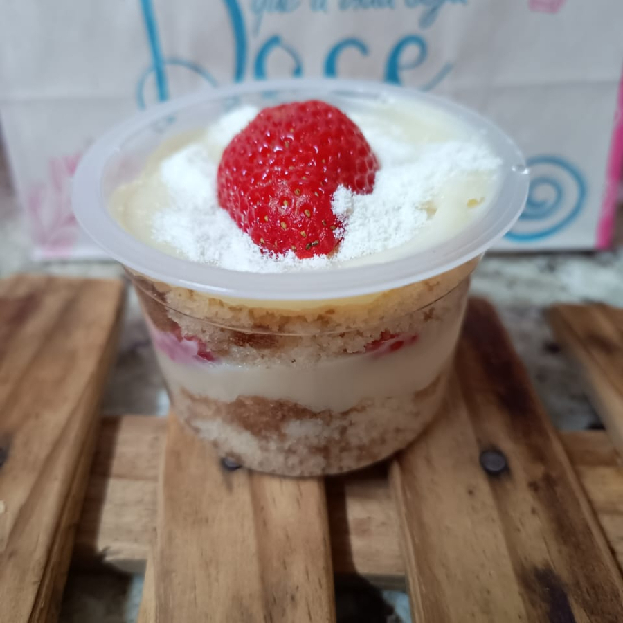 É a combinação perfeita entre a suavidade da massa fofinha, o sabor fresco dos morangos e a cremosidade do brigadeiro branco. Cada colherada traz equilíbrio entre o doce e o frutado, em uma explosão de sabor irresistível! Pote pequeno.