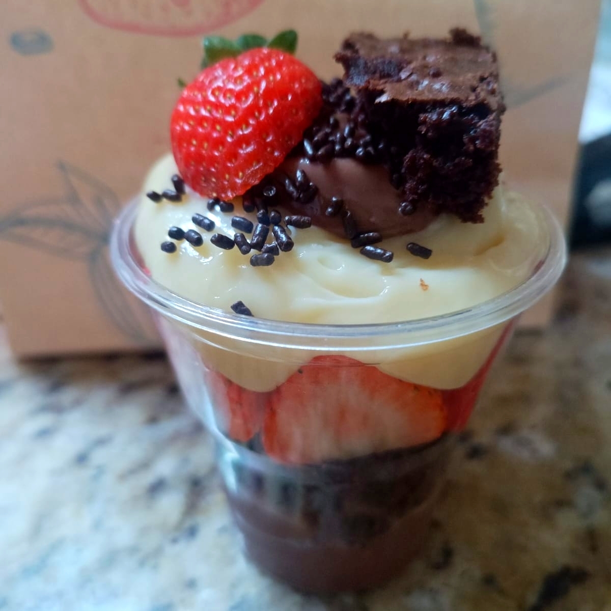 Copo Da Felicidade De Chocolate, Morango E Brownie - P