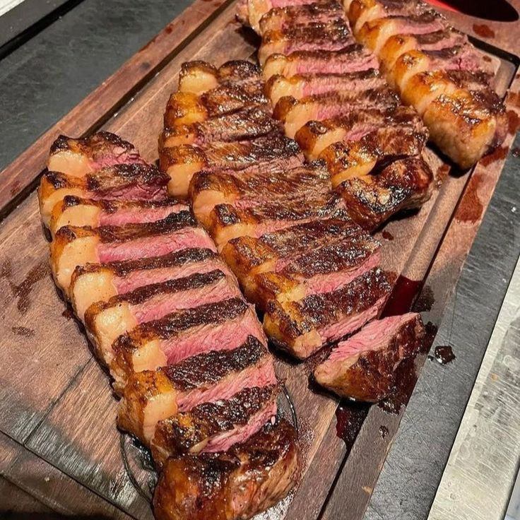Picanha suculenta grelhada no ponto perfeito, servida com alho crocante.