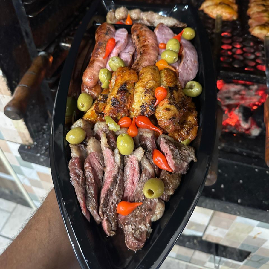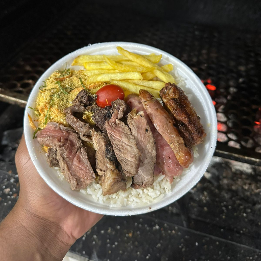 Picanha Tulipa linguiça, arroz feijão farofa e fritas e salada para maiores fome e completa