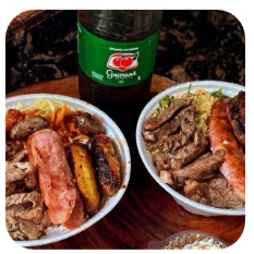 Duas Marmitex Mista de Contra Filé Grelhado, para maiores fomes acompanha: Arroz, Feijão, Farofa caseira, Fritas, Salada e Refri 600ml