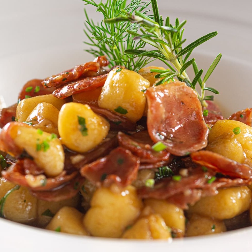 Gnocchi de mandioquinha com Ragu de linguiça de Bragança