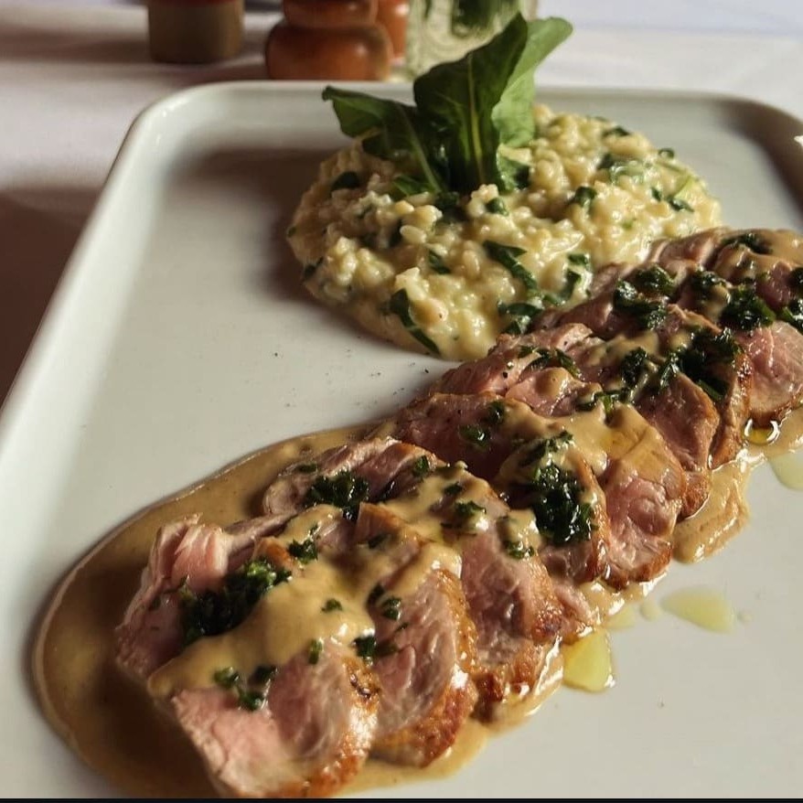 Medalhão De Filé Com Queijo Brie Maçaricado E Riso