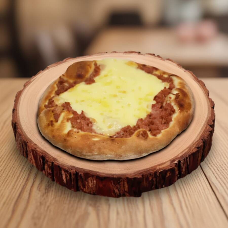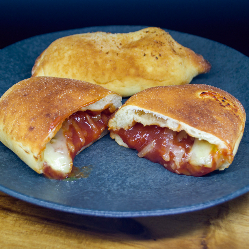 Molho de Tomate, Calabresa, cebola, oregano e Azeitonas Pretas