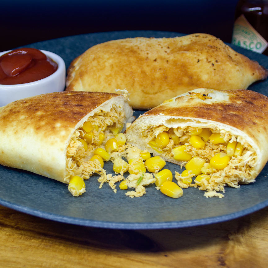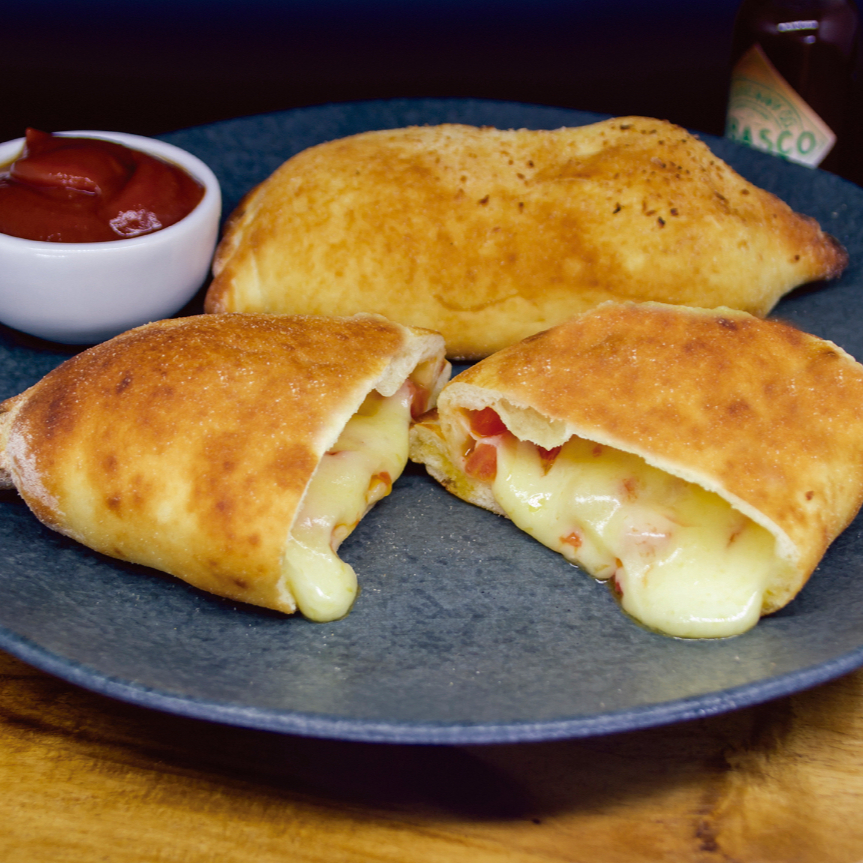 Frango, Maionese temperada, Catupiry original, Mussarela, Queijo prato e Tomate. Serve 2 pessoas.