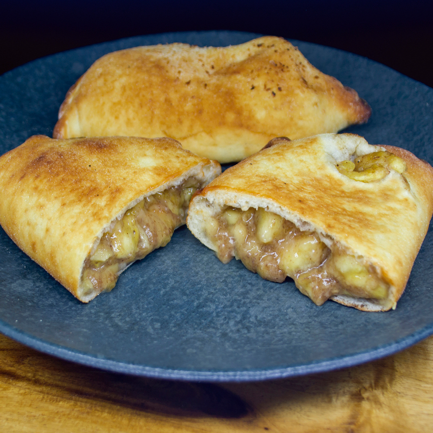Leite condensado, banana, canela em pó, açucar, mussarela e cereja