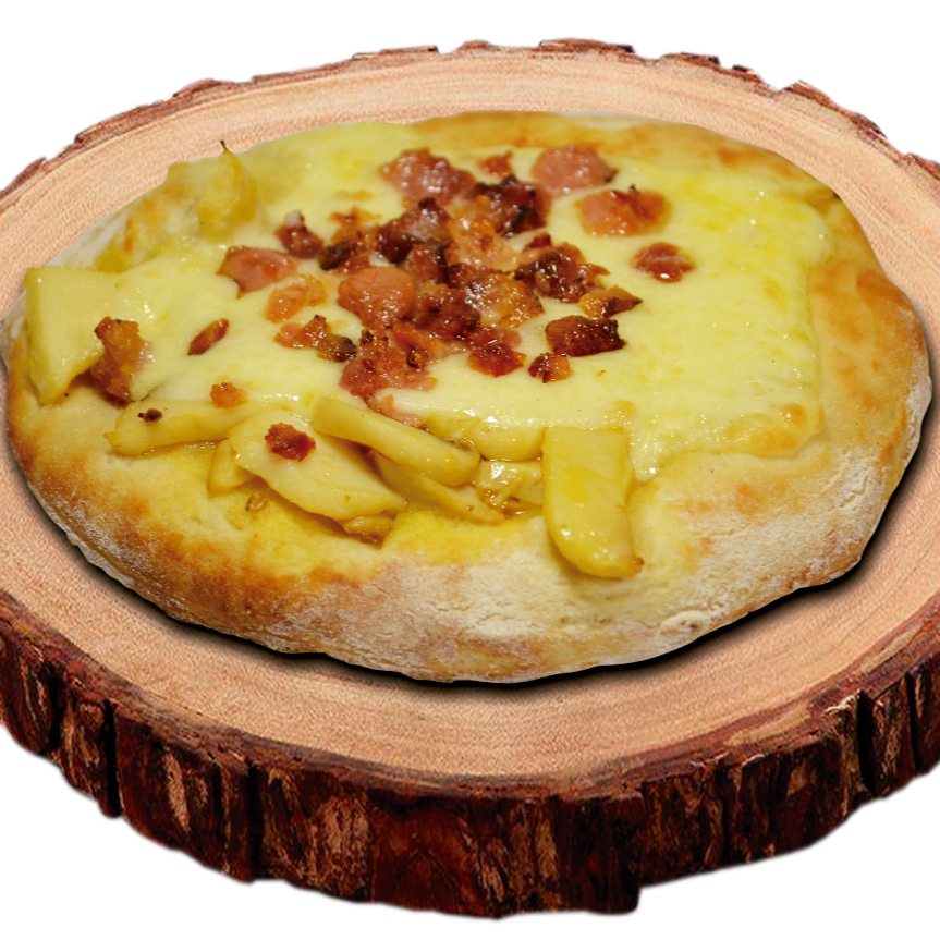 Atum, Presunto, Cebola, Mussarela, Catupiry original, Lascas de Parmesão e Bacon