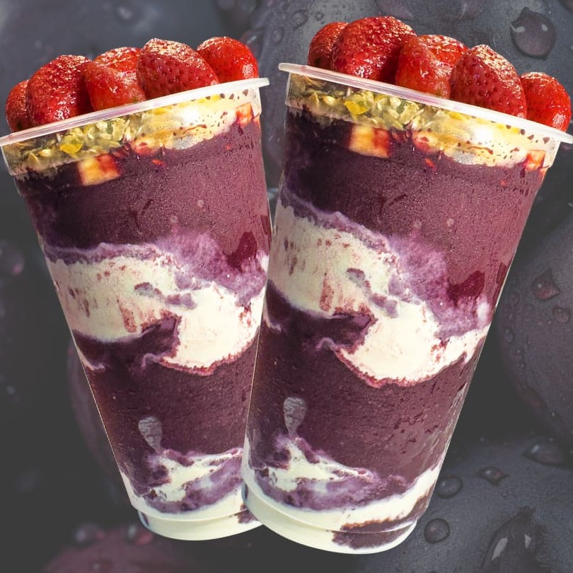 """Independentemente do clima, um delicioso açaí é sempre a escolha perfeita! Que tal se deliciar com nosso incrível combo de 2 açaís de 700ml? Escolha Os Acompanhamentos grátis: açaí, banana, leite condensado, leite em pó e granola. E não se esqueça de adicionar extras deliciosos como Nutella, creme de avelã, creme de leite Ninho, Confete e muito mais! Faça a sua escolha e deixe ainda mais gosto