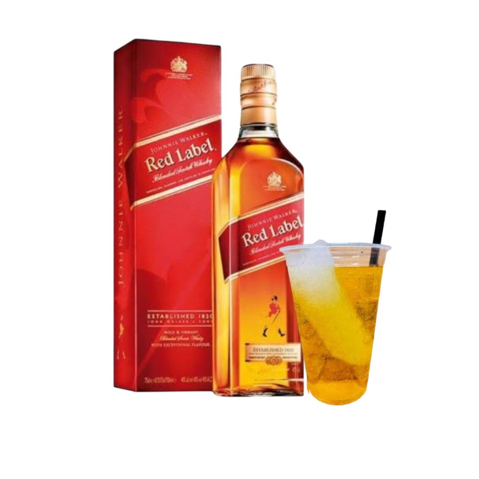 1 garrafa de Red Label, 4 gelos COKO sabor de sua preferencia, 4 redbulls