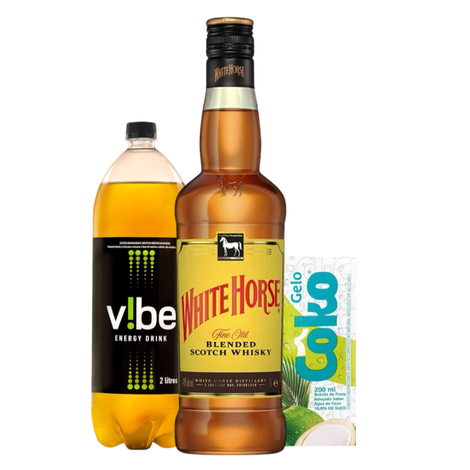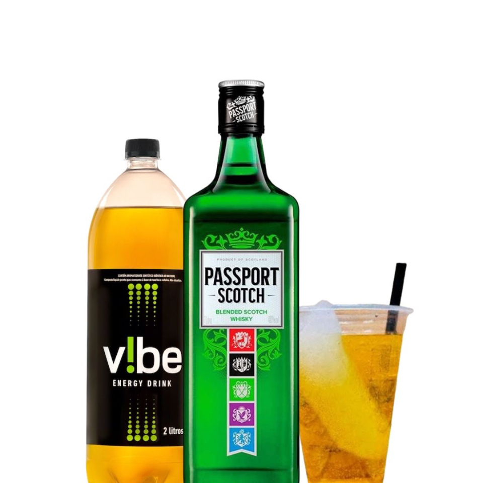 1 garrafa de Passaport, 1 energetico 2 litros vibe, 4 gelos COKO sabor de sua escolha