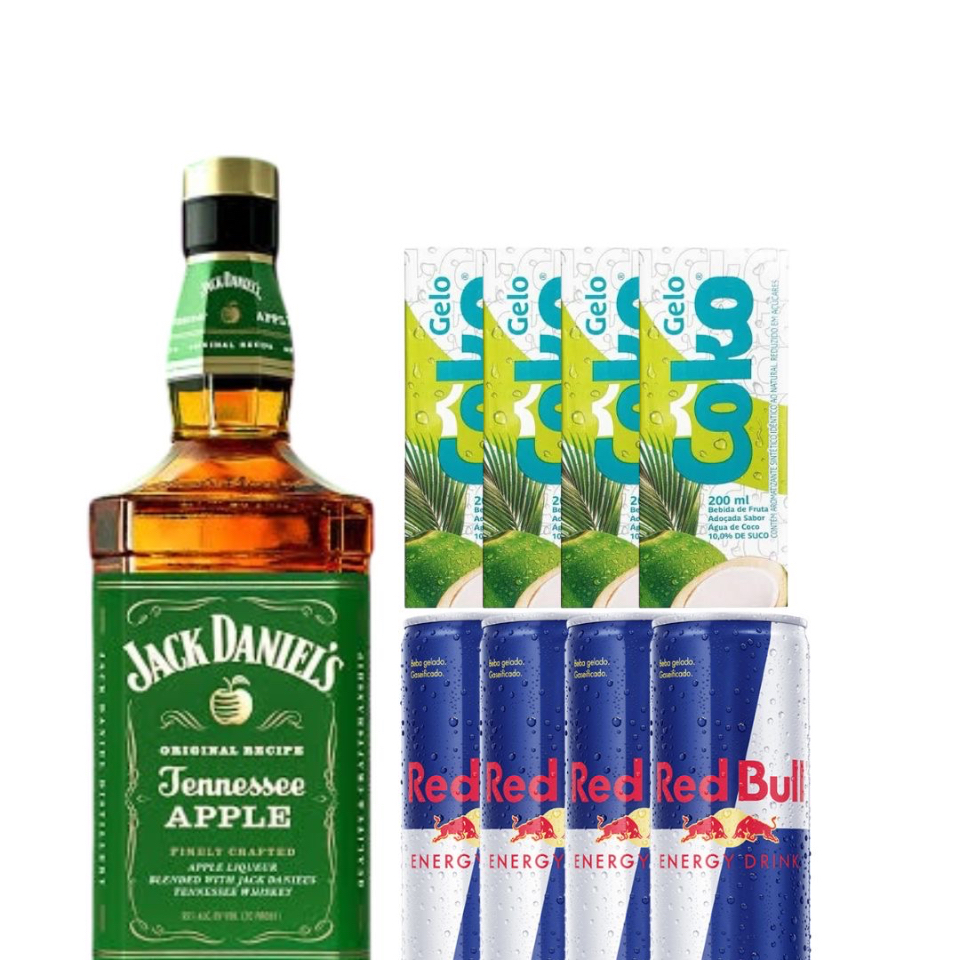 1 Jack de maçã, 4 redbulls , 4 gelos COKO sabor de sua preferencia