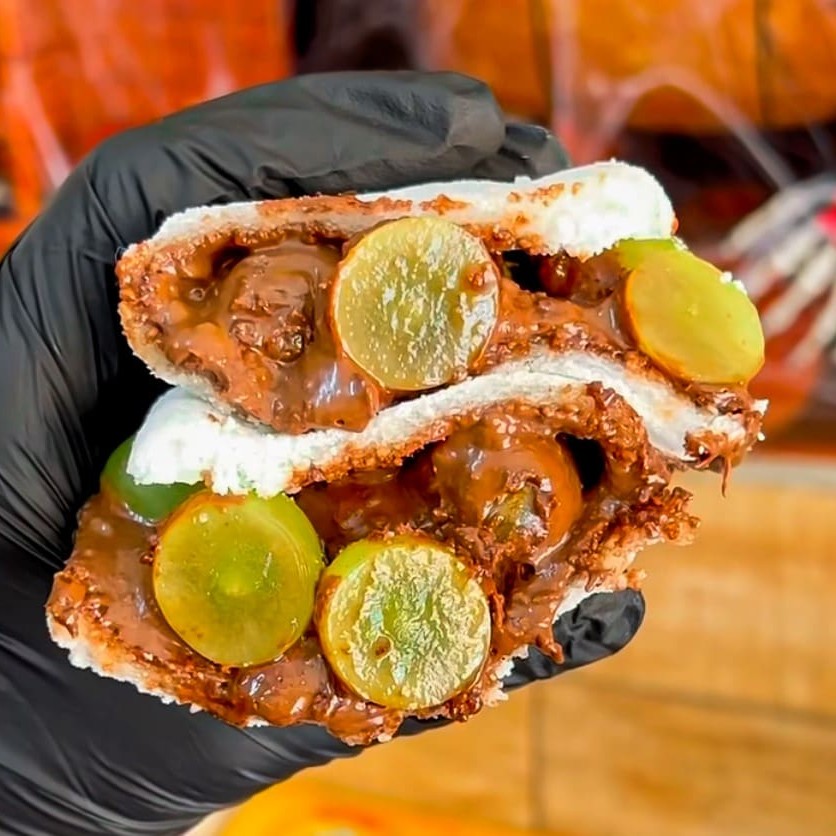 Nossa deliciosa massa de tapioca caseira totalmente natural e sem conservantes, acompanhada de 50g de Nutella Original e uvas sem sementes selecionadas!