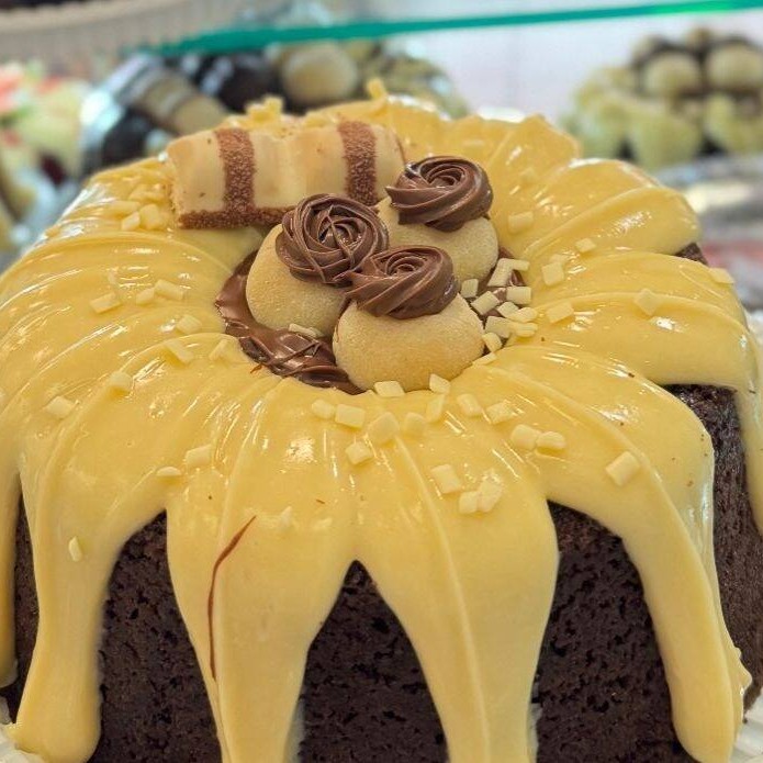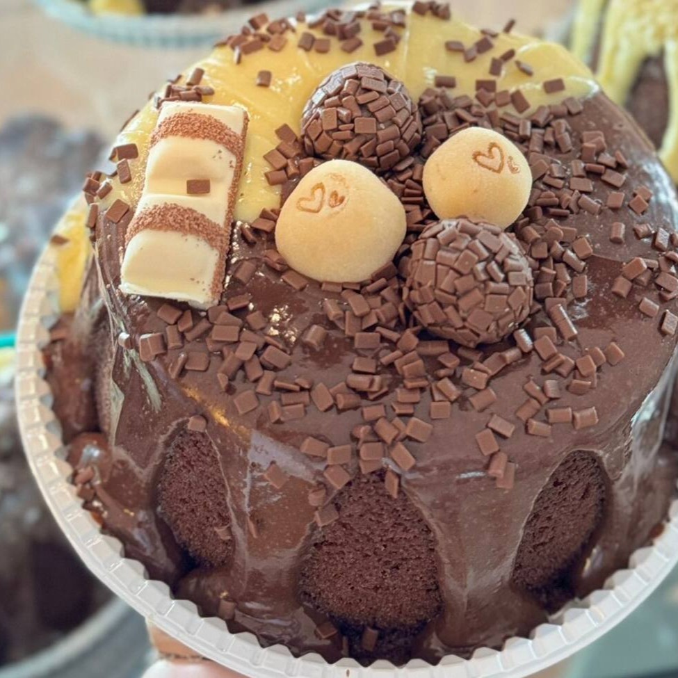 Bolo Vulcão Massa Chocolate, Sabor Ninho E Brigadeiro. Recomendamos retirada no local essa opção, corre o risco de chegar virado via motoboy. Peso aproximado: 1kg.