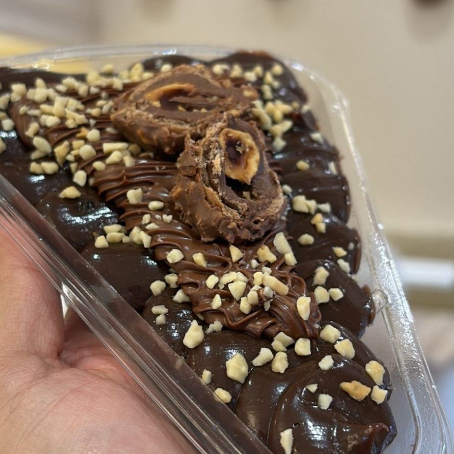 Massa Chocolate E Recheio De Ninho Com Nutella. Recomendamos retirada no local essa opção, corre o risco de chegar virado via motoboy. Peso aproximado: 1kg.