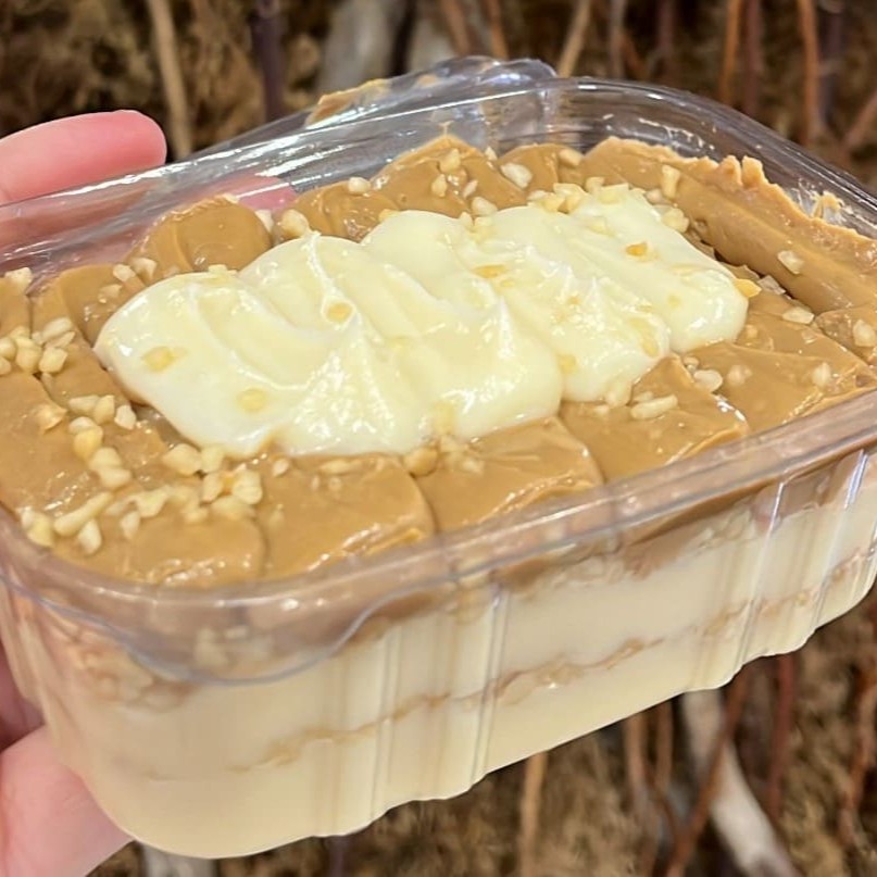 Acompanha creme de leite Ninho, doce de leite, amendoim e biscoito de maizena.